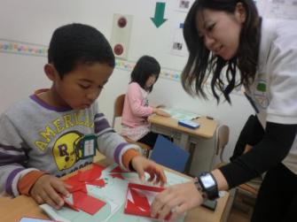 子供たちの好奇心を大切に「自ら学び考える」楽しさ、また習慣を身につけます。数やひらがなを楽しみながら自分で書けるように、イラストやシールをふんだんに使った教材で学びます。「できた!」という達成感を覚えることを通して自発的に学ぶ習慣を身につけていきます。