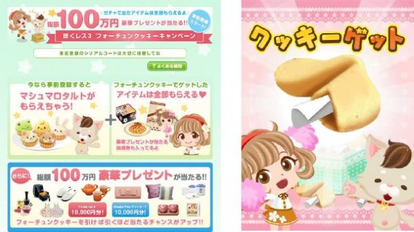 今回の事前登録キャンペーン「総額100万円(ハード)豪華プレゼントが当たる!ぼくレス3フォーチュンクッキー」では、フォーチュンクッキー(※)を引けば引く程お得なキャンペーンとなります。主に3つの特典をご用意しています。