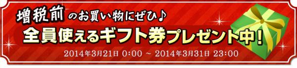 3月21日に、当キャンペーンを実施する全書店の全会員様に、「増税前に使えるギフト券(500円)」をもれなく配布いたします。「増税前に使えるギフト券(500円)」は、3月31日23時までに、税込15,000円以上のお買い物をする際に、1度だけ利用でき、500円分に充当されるものです。