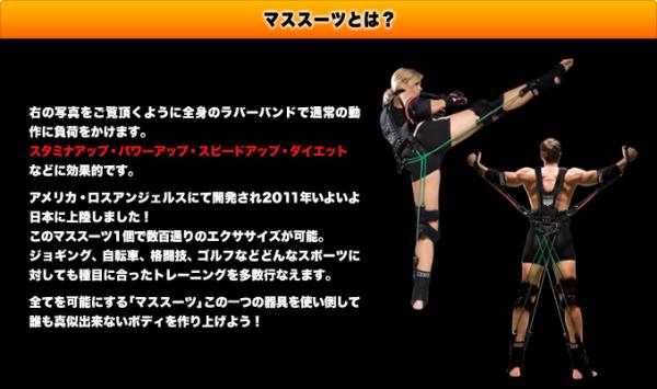 全身に渡るラバーバンドで全てのトレーニングレベルを上げる『マススーツ』