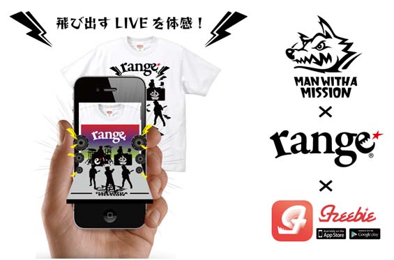 Augmented Reality(拡張現実)のリーディングカンパニーとして活躍する株式会社エンプライズ(本社:東京都千代田区、取締役社長:清 卓也)は2014年3月24日、同社が運営・展開するTシャツARアプリ「Freebie AR」にて、究極の生命体“MAN WITH A MISSION”(※1)と国内アパレルメーカー“range”(※2)とのトリプルコラボレーションTシャツを制作。アプリ内にてARサービスを開始いたしました。コラボAR-Tシャツはrangeホームページにて3/14より限定予約販売開始。