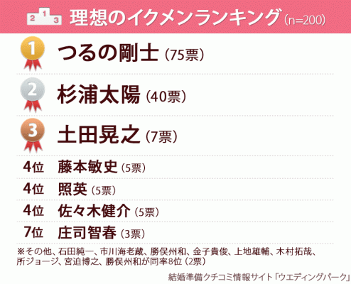 ・理想の芸能人イクメンランキング1位「つるの剛士」2位「杉浦太陽」3位「土田晃之」
