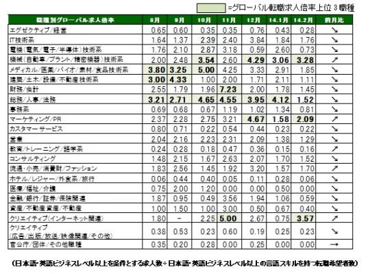 ◆職種別グローバル転職求人倍率