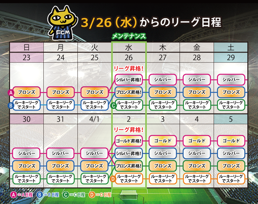 ・下位4チーム→次週水曜、ブロンズリーグへ降格