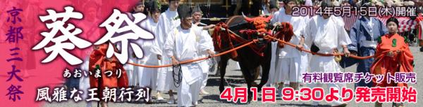 株式会社ティー・ゲート(本社:東京都千代田区、社長:橋屋 哲)が運営するトラベルサイト「旅の発見」(http://tabihatsu.jp)では、2014年4月1日(火)9:30より京都三大祭のひとつ「葵祭」(2014年5月15日開催)の有料観覧席(全席指定・パンフレット付)チケットを販売します。