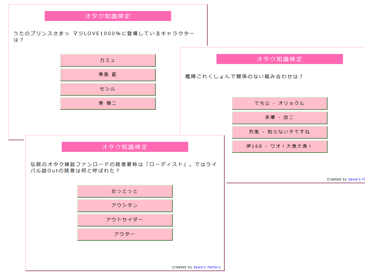初歩的なものからかなりの難問まで、自らもオタクであるアニ街コンスタッフが嬉々としながら作った問題揃い。ぜひチャレンジを!
