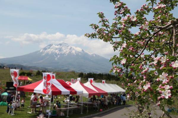 残雪の岩木山を背景に、白く可憐に咲き誇るりんごの花を楽しむイベントです。 弘前の美味しいものを集めたフードコートの出店や、津軽三味線の生演奏などのステージイベントも予定されています。りんごの花の下に敷物を敷いて、春の宴に酔うこともできます。昨年好評だった、りんごの花のライトアップやシードルナイトなど、週末を中心に、様々な催しが今年も用意されています。