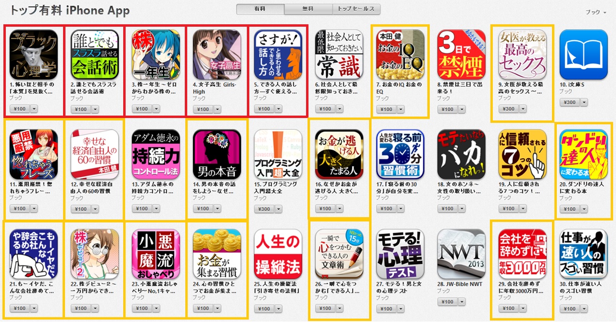 株式会社オープンアップス(東京都渋谷区:代表取締役 加藤秀樹)が2014年3月27日付でApp Store iPhoneブックアプリで5作品がランキング1~5位を獲得したことをお知らせします。