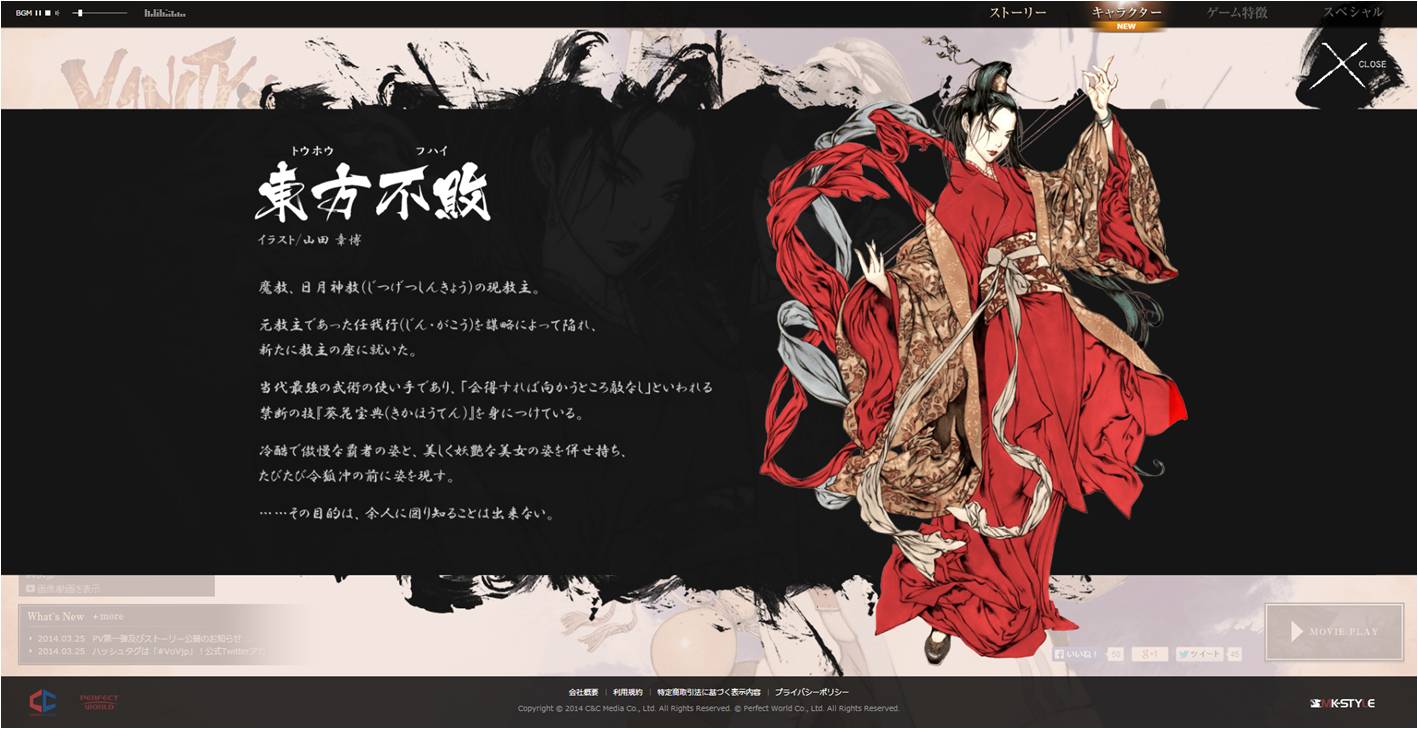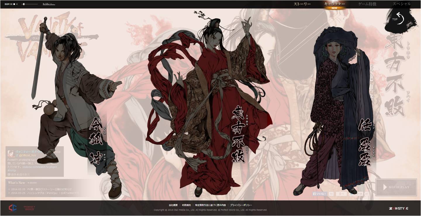 この度、株式会社シーアンドシーメディア(所在地:東京都中央区 代表取締役:魏 誠 以下:当社)は、新作PCオンラインゲームタイトル「VANITY of VANITIES」(ヴァニティー オブ ヴァニティーズ; 以下:VoV)のティザーサイトにおきまして、本日、2014年3月28日(金)、ゲーム内登場キャラクターのプロフィールを一部公開したことをお知らせいたします。