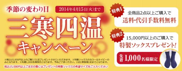 株式会社マネタイズ(所在地:東京都新宿区、代表取締役:高梨巧)が、加茂繊維株式会社(所在地:岡山県津山市、代表取締役:角野充俊)と共同で制作・運営しているWebサイト「“着る岩盤浴” BSファイン公式通販サイト」(http://www.bsfine.com/)では、2014年3月28日(金)~2014年4月15日(火)まで「季節の変わり目 三寒四温キャンペーン」を行います。