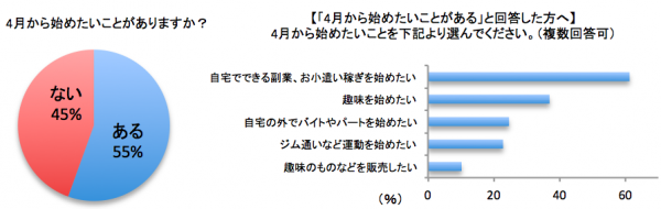 4月から始めたいことがある方は全体の55%となり、半数以上いらっしゃることが分かりました。