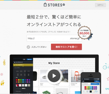 「STORES.jp」(ストアーズ・ドット・ジェーピー)(https://stores.jp)は、ウェブサイト制作の知識を全くお持ちでない方でも、簡単にオンラインストアを作ることができるサービスです。新規登録から開業まで に要する時間は最短2 分で、世界でひとつだけのオンラインストアをオープンできます。