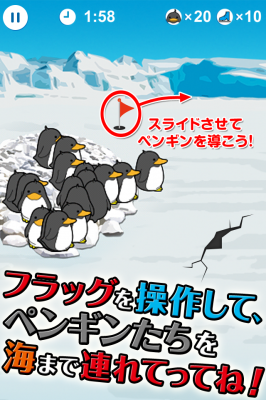 Android:https://play.google.com/store/apps/details?id=jp.co.transcosmos.penguinsurvival