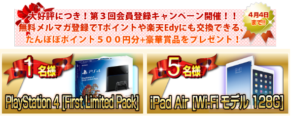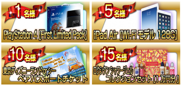 プレイステーション4やiPad Airをはじめ総勢80名様への豪華賞品プレゼント