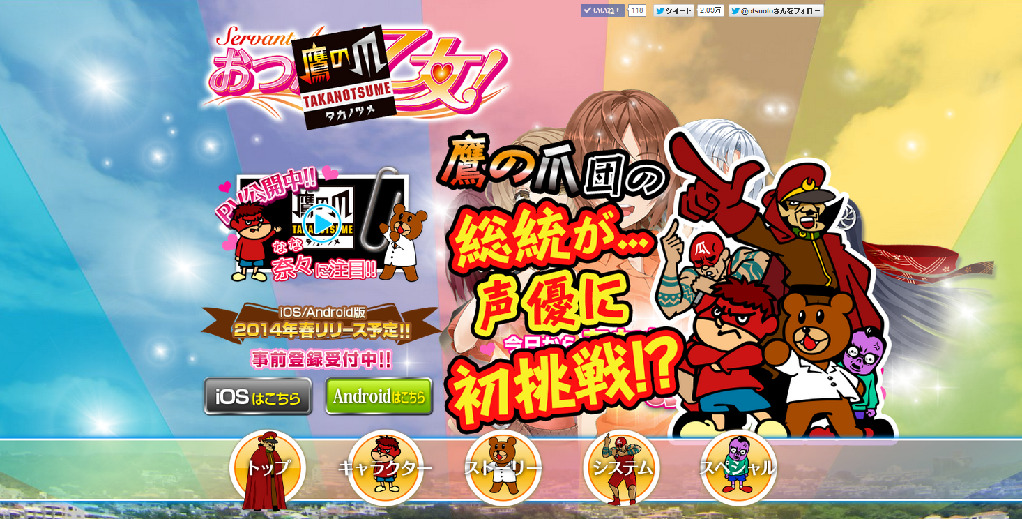 ラストの第7弾は、事前登録中のフルボイス恋愛アプリ「おつかえ乙女!」と「鷹の爪」でエイプリルフールのコラボキャンペーンを実施いたします。