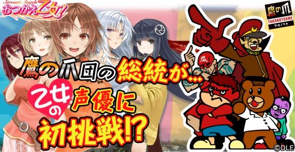 ラストの第7弾は、事前登録中のフルボイス恋愛アプリ「おつかえ乙女!」と「鷹の爪」でエイプリルフールのコラボキャンペーンを実施いたします。