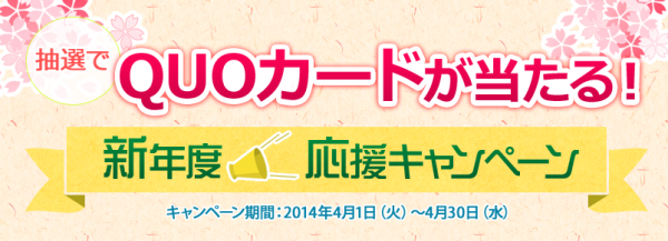 『新年度応援キャンペーン』は、2014年4月1日から30日までの期間中にキャンペーンページでエントリーの上、1回以上お買い物をされたお客様から、抽選で50名に500円分のQUOカードをプレゼントするものです。