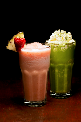 グリーンティーシロップ、ミルク、ホワイトチョコレートをミックスし、ホイップクリームを乗せた、和風スムージーです。