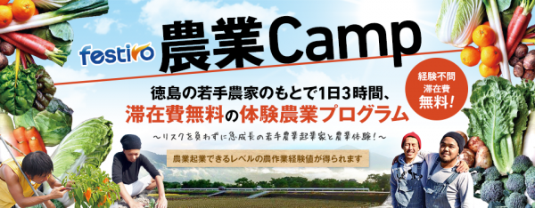 徳島の若手農家のもとで1日3時間、滞在費無料の体験農業を行うプログラム「festivo農業Camp」が4月1日よりスタート