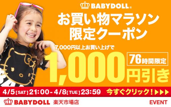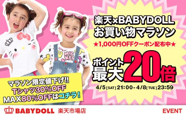 ベビー・キッズ服ブランドBABYDOLL(ベビードール)が、BABYDOLL 楽天市場店にて[楽天お買い物マラソン]を4/5(土)21時よりスタート!