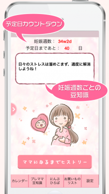 「もうすぐママ」は、妊娠週数の表示、出産予定日カウントダウンといった機能の他に、必要度や必要個数がわかりやすい買い物リストや妊娠記録機能など、様々な形で妊婦さんの生活支援を行うことが出来るアプリケーションです。