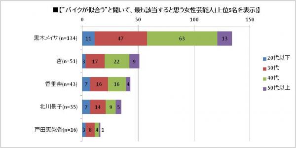 本調査は、女性の二輪免許保有者数が増加傾向にあることを受け、「最もバイクが似合う芸能人」について女性ライダーにイメージ調査を行ったものです。