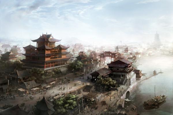 水辺の町では様々な人が行き交い、それぞれの生活を営んでいる。