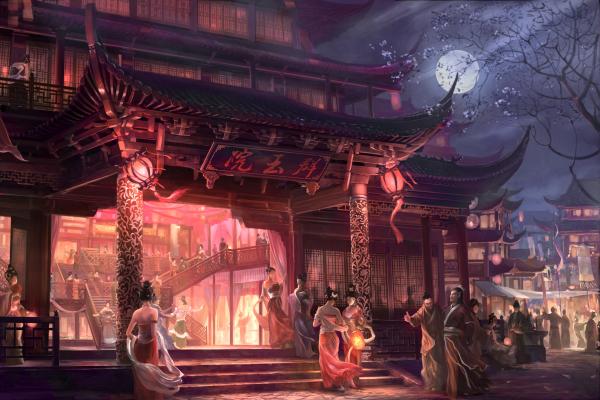 繁華街の夜には、女性たちは色取り取りに着飾って、一夜の宴を楽しんでいる。