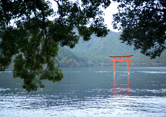 芦の湖畔ハイクの後は、縁結びの神様「九頭龍神社」へお参り。パワースポットで運気も上昇!?