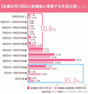 結婚後の理想年収は「仕事をセーブして家庭を支える派」と「稼いで支える派」の2極化