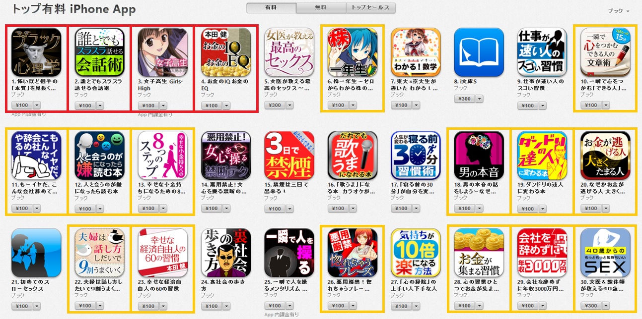 iPhone・iPad電子書籍アプリ1位「怖いほど相手の「本質」を見抜くブラック心理学」、2位「誰とでもスラスラ話せる会話術」、3位「女子高生 Girls-High」、4位「お金のIQ お金のEQ」の4作品がランキング上位を獲得!また、ブックランキングベスト30位以内に18作品がランクイン!!