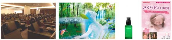 “さくら色”LED照明は、「癒し」の効果が確認された照明です。スパでのリラックスタイムをお過ごしいただく場所には最適で、さくら色の光は、見た目にも癒される空間を演出しています。