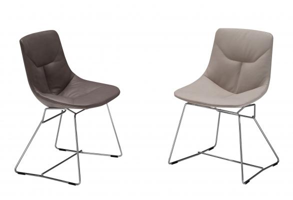 「コリーナチェア」の特徴は「金属のロッドフレームとレザーのカバー」(ルドヴィカ+ロベルト・パロンバ)。高度なクラフトマンシップが凝縮されたシェルチェアは、その細部や曲線からマセラティモデルのシートを思わせます。軽やかな“アーマー”デザインから伸びるスチールの脚は、クロームまたはニッケルメッキのグロッシーブラック仕上げで、強度に優れたポリウレタン製シェルがやさしい座り心地を実現します。取り外し可能なカバーには、キルト加工のレザーと熱融着性のポリエステル繊維を組み合わせています。