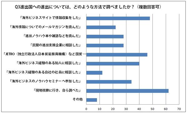 日本とは、法律規制も商流もマーケット特性なども異なるのが海外ビジネスの難しさです。進出する前に、現地の情報収集をしっかり行うことが肝心となります。そこで今回の調査では「進出先の情報をどのような方法で調べたのか」について調べました。