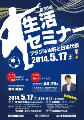 いよいよ6月から開幕するブラジルW杯。東京新聞では、ブラジル杯と日本代表をテーマに「第36回生活セミナー」を開催致します。生活セミナーは、スポーツ、暮らしや文化、歴史等をテーマにした無料の講演会です。今回は、躍進の期待が掛かる日本代表と日本のサッカー界を取り上げます。