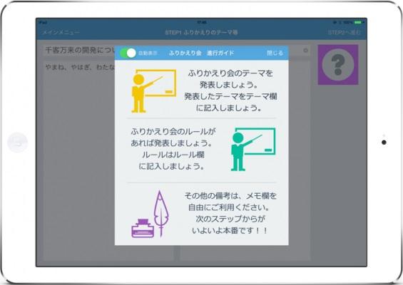 【ふりかえりフロー】は、各工程で必要となる情報を効果的に表示します。