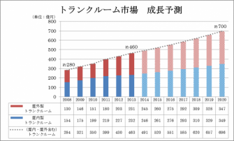 総店舗数は6200店舗、ユニット(室)数は285,000室へと増加し、いずれも2008年比1.6倍(2008年:3,500店舗、175,000室)の成長を示しています。2008年からの6年間と同等の拡大が今後も続くと仮定した場合、東京オリンピックが開催される2020年には700億円、2027年には1,000億円市場へと成長する可能性を秘めています。