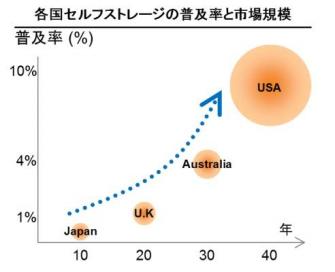 ◆日本のトランクルーム市場はサービスの認知度は依然低く、今後認知度の上昇と共に高い潜在成長性を秘める未開発市場である。