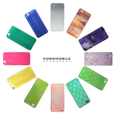「その日のシーンに合わせてスマートフォンの“衣”も着替える」をコンセプトに作られたスマートフォン用の着せ替えシール 「KOROMOBILE」は、貼るだけでスマートフォンの印象をがらりと変えるだけでなく、貼って剥がせる素材を使用していますので、自由に着せ替えながら繰り返しご利用頂けます。