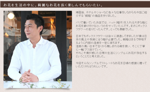 そんな子供世代の声に応えるべく、リリース商品第一弾として2014年母の日向けに『デザイナーで選ぶフラワーギフト』を、引き続き『社会にイイを贈る・共有するエシカルギフト』、『贈る体験一体型ギフト-上京したら一緒にスイーツギフト』など、「コミュニケーション」、「感動共有」、「モノだけでなく想いも届ける」をテーマとしたコンセプト型の商品をリリースしていきます。