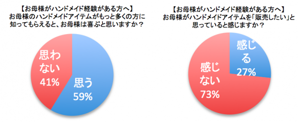 また、お母さんご自身が実際にハンドメイドアイテムを「販売したい」と思っていると感じる方も、およそ4人に1人いらっしゃることが分かりました。