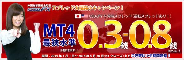 当社店頭外国為替証拠金取引「アクセスFX」において、現在実施中の「スプレッド大幅縮小キャンペーン(※)」について、多くのお客様にご好評いただいているため、キャンペーン期間の【1ヶ月延長】を決定いたしましたのでお知らせいたします。