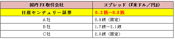 内 容:「米ドル/円」のスプレッドを『0.3銭~0.8銭』に縮小(※)