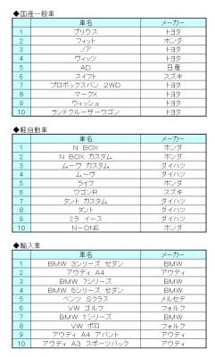 上げました。軽自動車部門は、先月に続いてNシリーズが3車種ランクイン。今月はワゴンR(スズキ)が