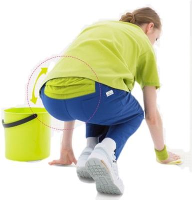 服装解剖学から生まれたベルデクセル(R)の機能を活かし、ストレッチ素材を採用することで、動きやすさを改善。