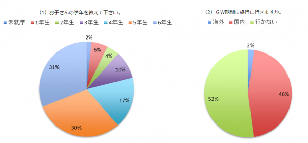 5年生、6年生が過半数を占めるという学年構成からか、ゴールデンウィークに旅行に行かないというご家庭が半数を超えています。お出かけは近場にして、ご家庭で学習計画を立てているのかもしれませんね。