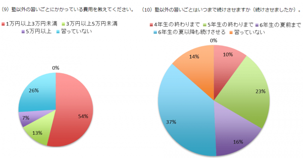 6年生になってからも習いごとを続けさせるとお答になったご家庭が51%と過半数を超えたからです。夏以降も続けさせるとお答えの方も3分の1以上に上りました。「子どもの成長は塾や受験だけではない」という、親御さんの想いが伝わってくるようです。文武両道という言葉がありますが、心身共にバランス良く育ってほしいという願いの表れでしょう。
