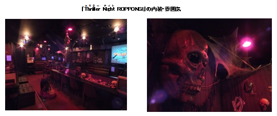 東京進出の第1号店「怪談ライブBarThriller(スリラー)Night(ナイト)ROPPONGI」は、薄暗い照明で演出され、天井や怪談の不気味な飾りつけをはじめ、照明、内装などすべてが怪談の世界観で統一されており、怪談ライブを全身で体感できるように作られています。怪談ライブは、専門の語り手によって45分に1度繰り広げられ(1日12公演)、ライブ後には語り手が客席まで挨拶に来て色々な話をしてくれます。怪談ライブ以外の時間は楽しくお酒を楽しめて、怪談ライブ中は豪快に絶叫できる、今までにない全く新しいエンターテイメントバーです。
