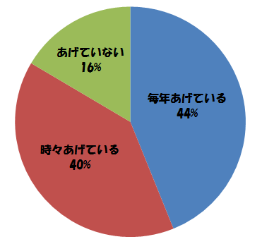 「毎年あげている」が約44%、「時々あげている」が約40%という結果になりました。