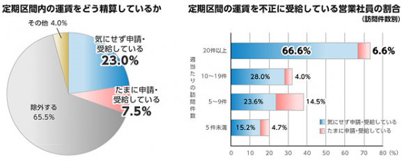 この度、企業の営業担当者(200名)に対して調査をしたところ、約30%が電車賃の交通費精算の際、本来かからない自身の定期区間内の運賃も、不正に申請し受け取っていることがわかりました。